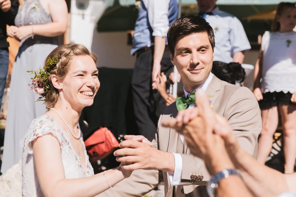 …nein nicht dem Zeitpunkt, als sie mir erzählte, dass sie Kühe mag, sondern: Die beiden wohnten früher im gleichen Ort wie ich, in dem ich als Kind aufgewachsen bin. Da fällt mir das Sprichwort „Wie die Zeit vergeht“ grade spontan ein. Kitschig ja, aber so ist’s einfach. Wir sind uns aufgrund des gemeinsamen Freundeskreises und der Umgebung mit Sicherheit in Kindheitstagen schon öfter über den Weg gelaufen. Ja sogar die gleiche Schule hatten wir zeitweise besucht? Und da saßen die beiden nun, bei mir, für ihre Hochzeitsfotos. Wohnen jetzt weit weg von mir entfernt, fanden mich im Internet, ohne unsere gemeinsame Geschichte zu kennen und dann ein solcher Zufall. Wie war das noch gleich? Zufälle, die gibt’s gar nicht. Oh doch, die gibts. Und die sind sowas von toll!