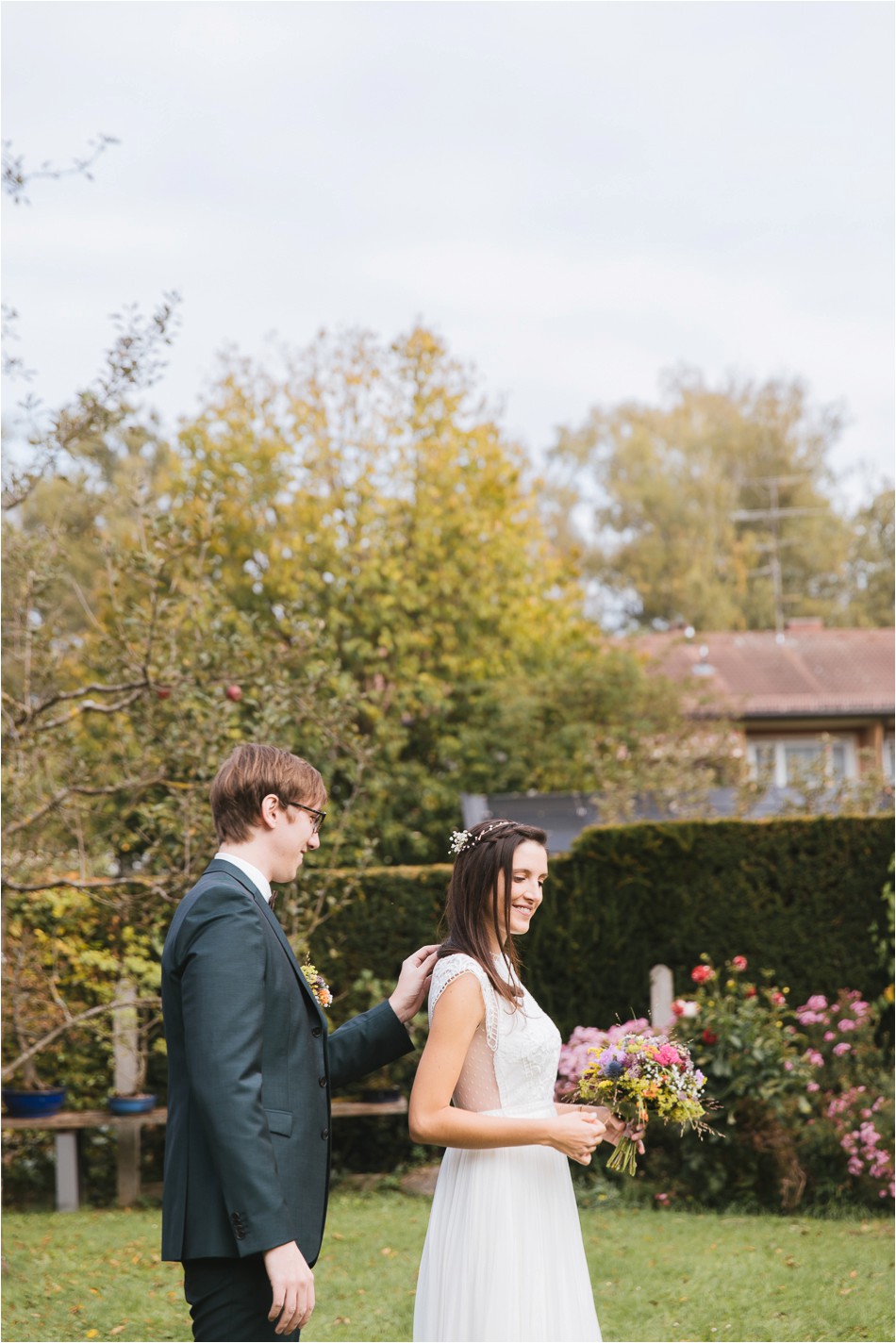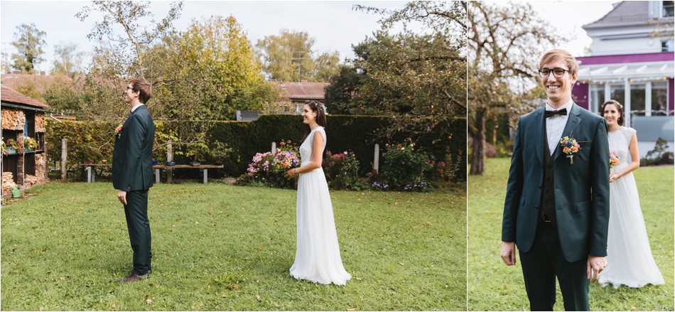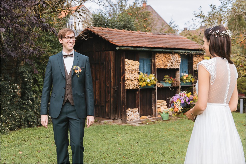 The passed Form ID is not validWie immer bin ich zu früh dran – eigentlich bei jeder Hochzeit. Der Tag begann für das Brautpaar, wie für mich, mit dem First Look. Ich wartete also noch ganz gespannt im Auto und voller Vorfreude. Zuvor hatte ich noch Zeit einen kleinen Abstecher in die Kirche zu machen, bei der der Pianist soeben noch sich einprobt und übt, bevor es in Kürze mit der kirchlichen Trauung weiter ging. Ich packte also meine Umhängetasche und zog mit schnellen Schritten voran zum Haus des Brautpaares. Dort angekommen, öffnete mir bereits ein recht nervöser und aufgeregter Bräutigam die Tür. Die Trauzeugin huschte vom ersten Stock über die knarzenden Treppen an mir vorbei, warf ein schnelles „hi“ um die Ecke und verschwand zur Braut. Bevor es losging hatte ich noch Zeit, das Geschehen im Haus mit Eltern & Oma als stiller Beobachter zu betrachten. Alle waren ganz nervös und ein kleinwenig Aufregung zog durch das Haus wie ein Windhauch. Im Garten war es dann soweit. Die wunderschöne Braut traf ein und der Hochzeitstag begann, für uns alle.