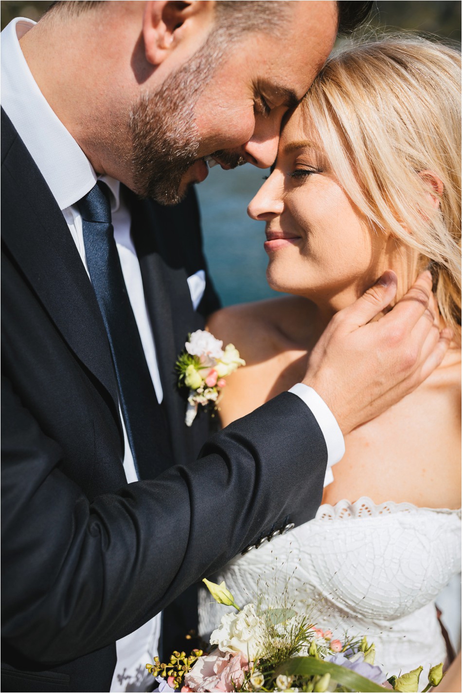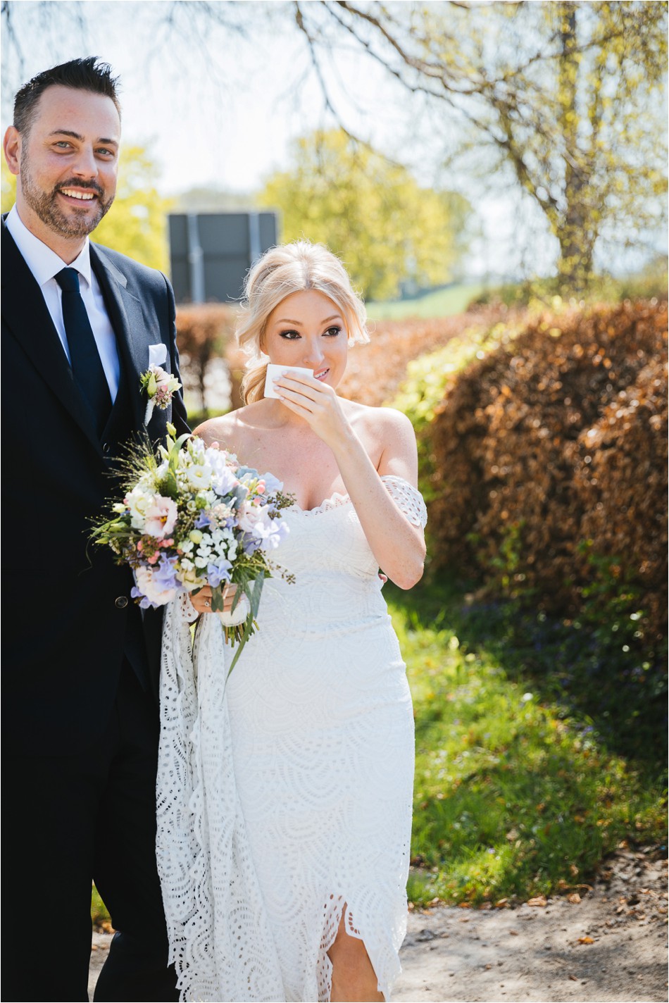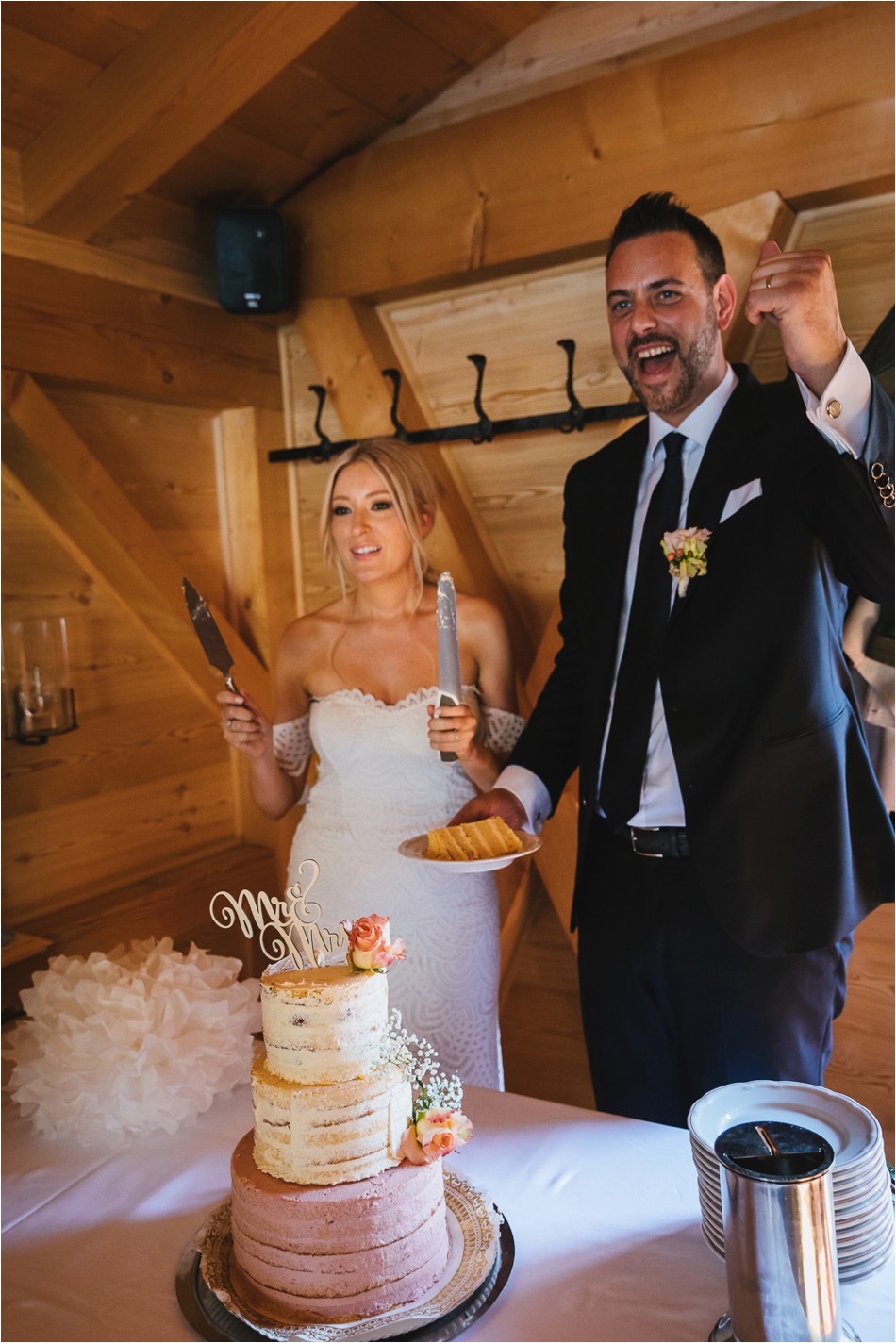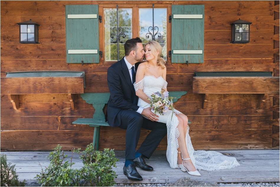 Man spürte den Frühling und roch schon den Sommer, der uns dieses Jahr bevor stand. Im Malerwinkel Tegernsee angekommen, erwartete uns bereits das superleckere Essen und ein kleiner Empfang. Im Anschluss daran hatten die Gäste Zeit ein wenig zu entspannen und einzuchecken, währenddessen wir die mit den Brautpaarfotos begonnen. Nach einer kleinen Familien-Fotosession und anschließendem Kuchenanschnitt war für mich meine Zeit auch schon wieder vorbei. Am Ende kam Polly – sie musste natürlich auch noch auf das ein oder andere Foto.