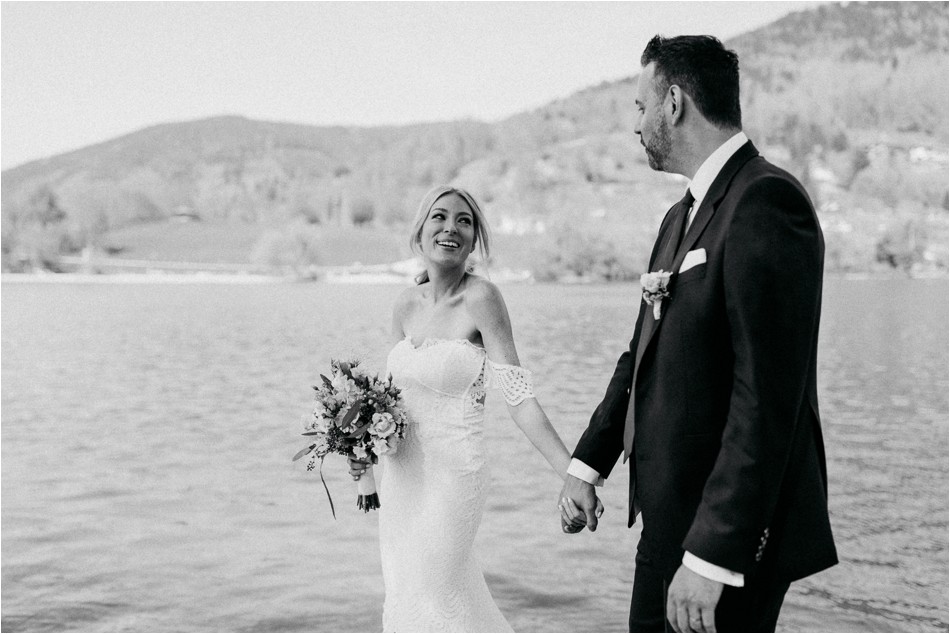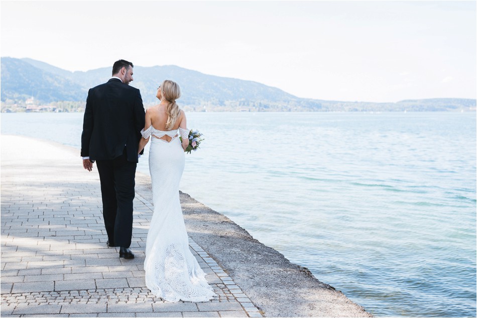 Strahlender Sonnenschein und nahezu sommerliche Temperaturen erwarteten mich bei der Frühlingshochzeit im Seehotel Malerwinkel am Tegernsee dieses Jahr. N & M heirateten Mitte-Ende April bei traumhaft schönem Wetter. Es sollte eine kleine, standesamtliche, stilvolle Trauung werden mit anschließender Feier im Seehotel Malerwinkel am Tegernsee. Ich habe selten bei Trauungen Tränen gelacht, aber die Trauung im Standesamt Waakirchen war dieses Jahr die ereignisreichste und mit Abstand die Trauung, bei der am meisten Tränen gelacht wurden. Auch mir fiel es zeitweise schwer, bei der wirklich originellen Rede des Standesbeamten, weiterhin auf die Fotos zu konzentriert zu sein. Nachdem das JA-Wort & Ringe getauscht wurden, ging’s direkt zum Seehotel Malerwinkel zum schönen Tegernsee, der sich an diesem tollen Apriltag von der besten Seite zeigte.