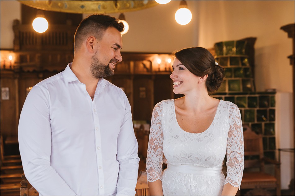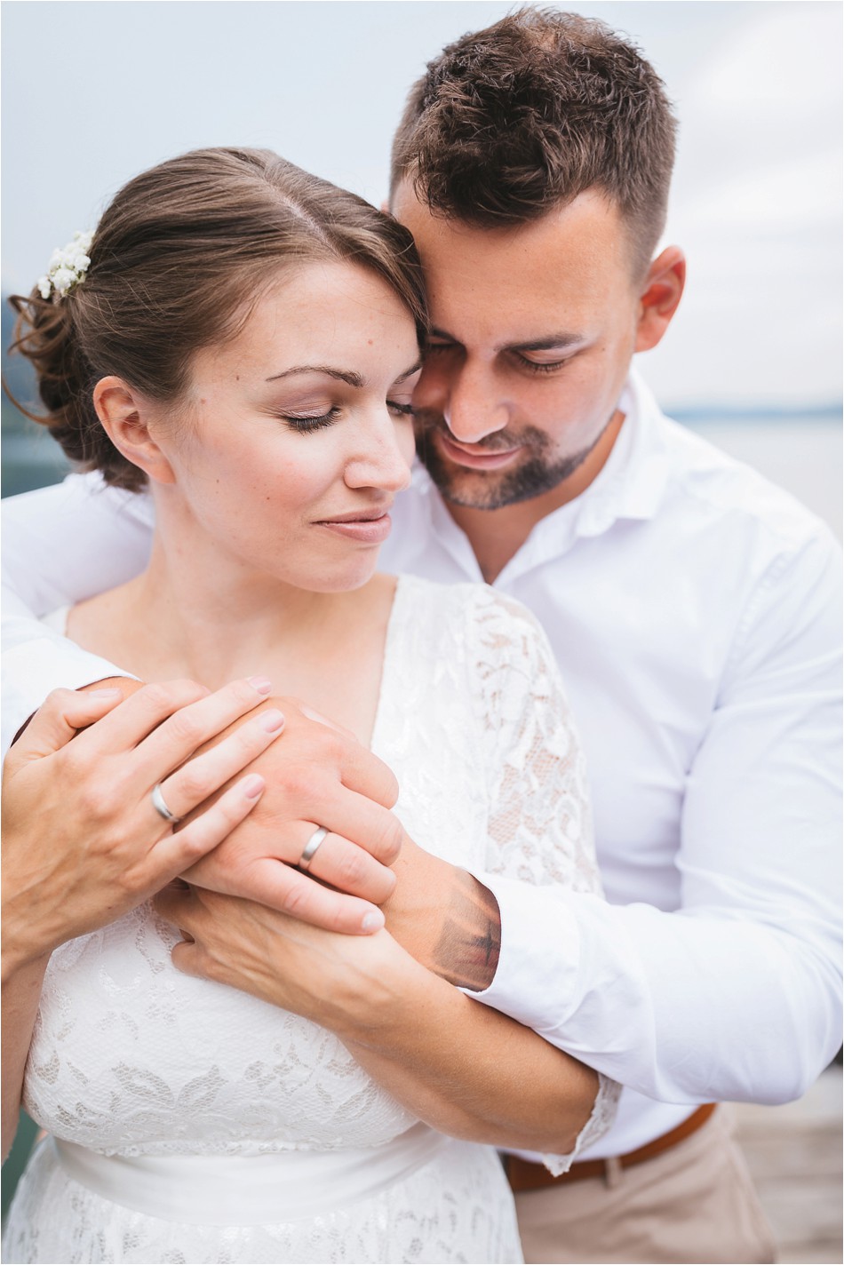 Entgegen der aktuellen Hitzewelle Ende Juli, war es Anfang Juni am schönen Spitzingsee sowie Schliersee alles andere als heiß. Der Wetterbericht sagte Regen und leichten Wind voraus. Weit entfernt von perfektem Hochzeitswetter also. Ich fuhr mit einem etwas mulmigen Gefühl in punkto Wetter zum schönen Spitzingsee, an dem mich mein bereits nervöses Brautpaar schon erwartete. Es sollte diesmal keine große Hochzeit werden. Klein, intim und ohne Gäste. Wie, ohne Gäste? Ja, ohne Gäste! Keine Trauzeugen, keine große Party, sondern nur das Brautpaar – und ich, zugegebenermaßen. Mein Brautpaar feierte ihre Hochzeit zu zweit am schönen Schliersee. Heutzutage wird dieses Art des Heiratens als ein Elopement betitelt. Ich hab schon viele Hochzeiten begleitet, jedoch bisher kein Elopement. Demzufolge war ich doch etwas aufgeregt. Dort angekommen verflog die Aufregung sofort, als mich der Bräutigam herzlich in Empfang nahm und ich zum Zimmer der Braut gebracht wurde. Ab da an verging die Zeit wie im Flug für mich. Nach einem First Look bei leichtem Sonnenschein, verbrachten wir drei tolle Stunden zusammen. Die beiden hatten viele innige und wunderschöne Momente, sie lachten und hatten Spaß. Zuletzt hatte auch Petrus ein Einsehen mit mir und ließ seine Schleusen bis zum letzten Wunschfoto am Spitzingsee (an dem die Braut ihren Antrag bekam) geschlossen!