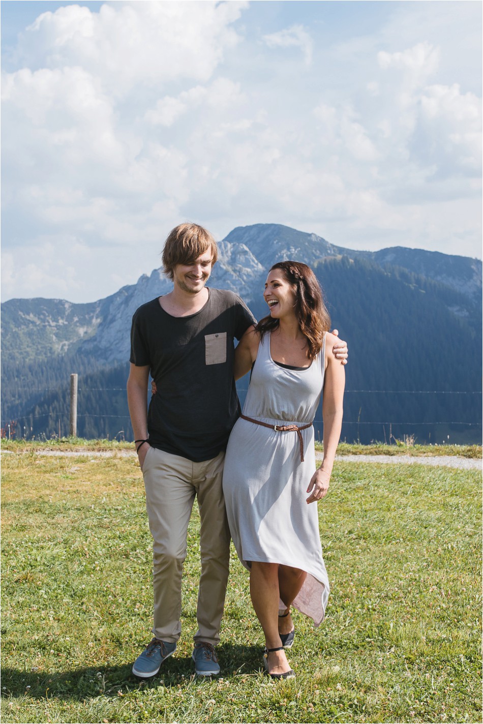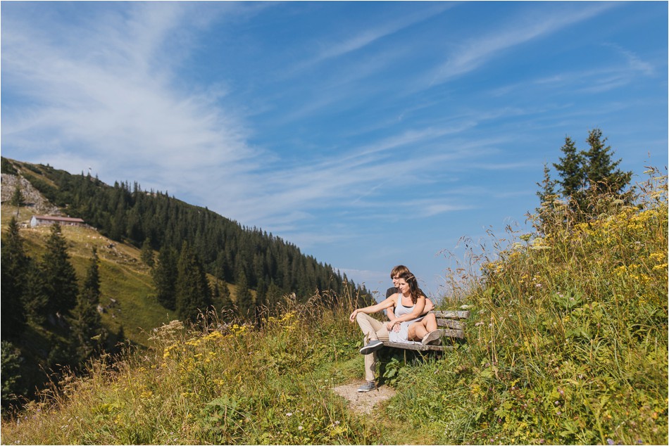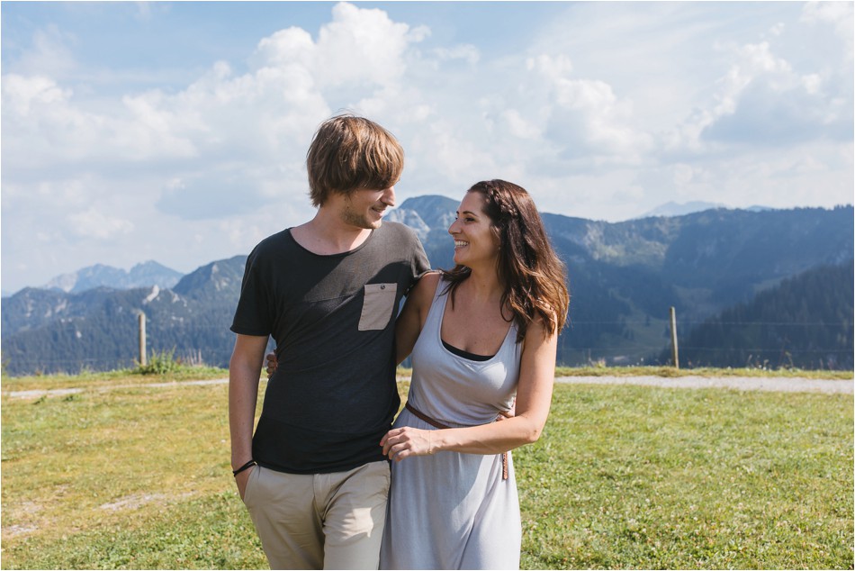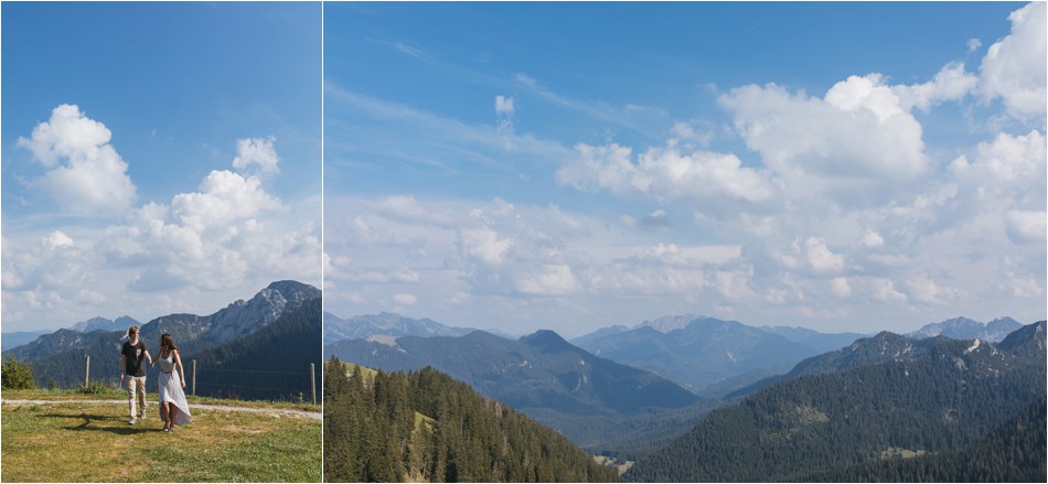 Zugegebenermaßen, dieses Preweddingshoot lief etwas anders, als ursprünglich geplant. Es war von uns sehr sportlich, an einem Freitagnachmittag zum Wallberg am Tegernsee fahren zu wollen. Der Verkehr rund um München ist am Wochenendanfang Richtung Österreich auf der A8 meist recht hoch. Dies fiel uns leider auch erst so richtig auf, als wir im Stau standen. Daher hieß es nun, sich ein wenig zu beeilen, denn die Wallbergbahn hat ihre letzte Talfahrt um 17 Uhr. Den Abstieg zu Fuß nach unten? Ehm, nein – das wollten wir dann doch nicht. Und somit fand dieses tolle Preweddingshoot (die Hochzeitsfotos folgen auch bald auf dem Blog) an einem Freitagnachmittag mit Gondelfahrt rauf & runter in einer Stunde statt. Der große Vorteil so spät raufzufahren: es war nahezu leer. Kaum ein Wanderer verirrte sich dort oben noch, sodass wir in Ruhe alles fotografieren konnten. Die beiden haben es mit bravur gemeistert und es sind viele wunderschöne Bilder dabei entstanden. Eine kleine Auswahl aus dem Shoot steht ihr nun hier: