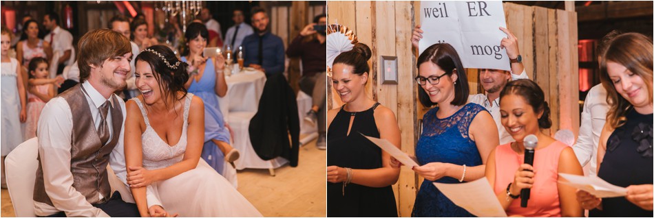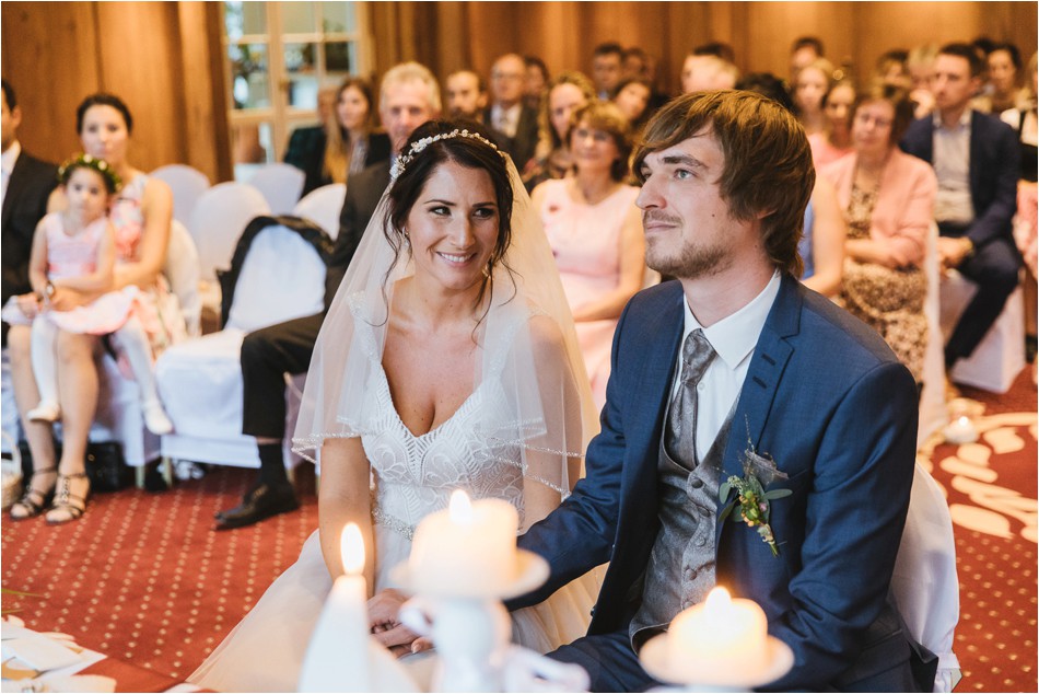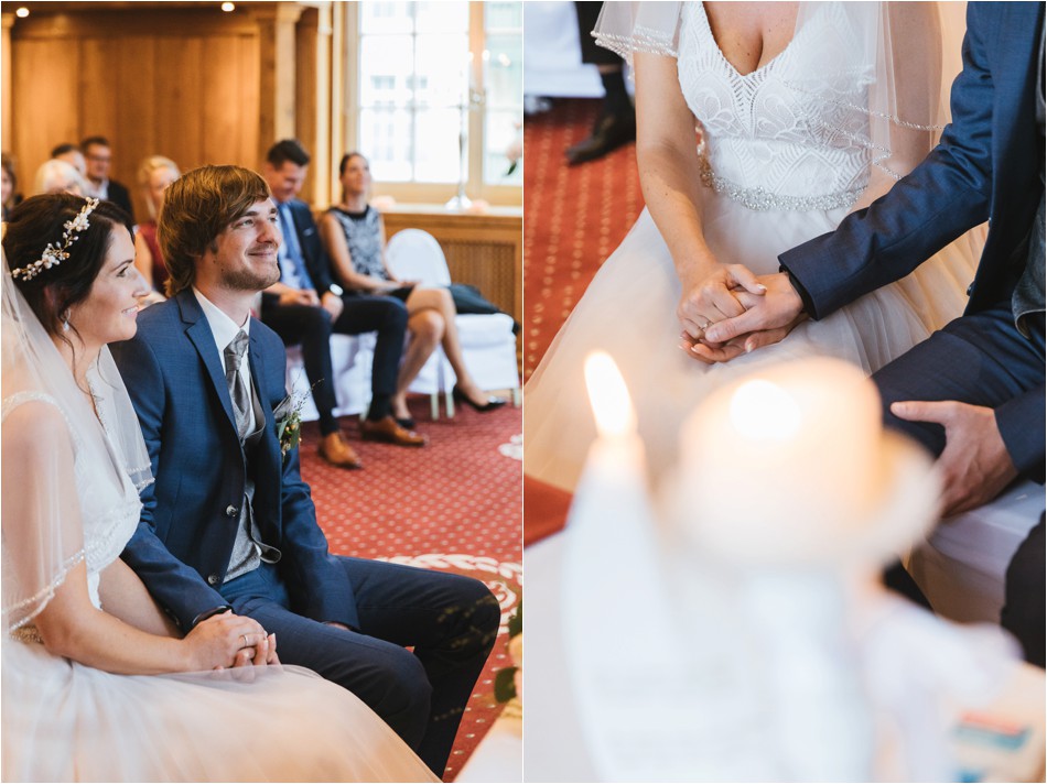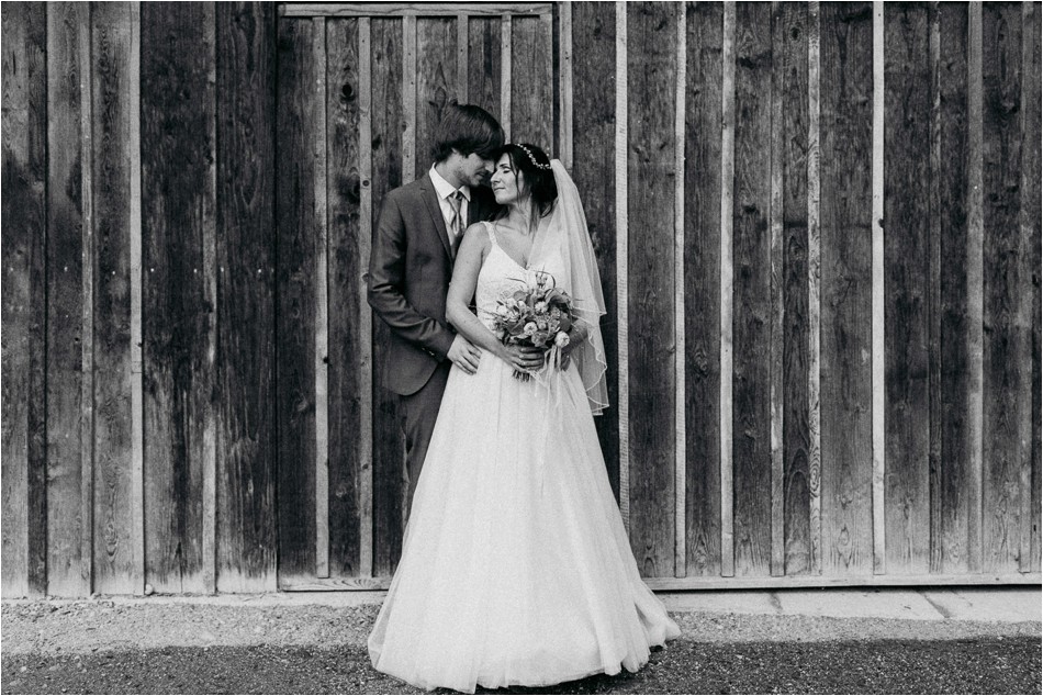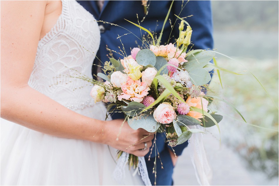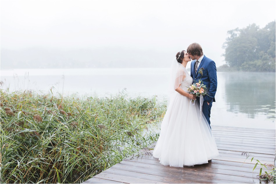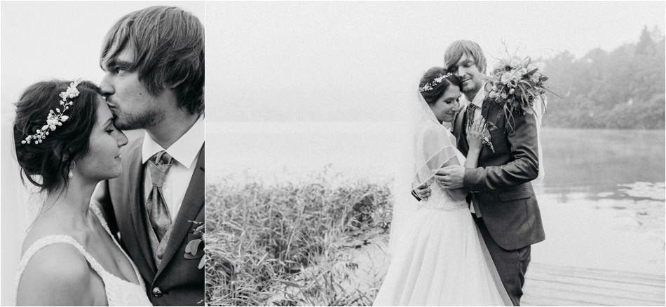 Sie tanzen und tanzen und tanzen über Stunden hinweg, ein großes Fest. Es wird ein langer und intensiver Tag, der sich vollumfänglich auf die Liebe zweier Menschen fokussiert. Es tanzen die Regentropfen. Ein Tropfen nach dem Anderen, sie feiern eine große Regenhochzeit am Schliersee und laden all ihre Freunde ein. Und nein, sie feiern nicht nur eine Stunde, sie feiern den ganzen Tag und machen nur eine ganz kurze Verschnaufpause. Und so kam es, dass wir umgeben von einer sagenhaften Stille, den tanzenden Regentropfen, dem Nebel über dem Schliersee die Liebe meines umwerfend aussehenden Brautpaares feierten.