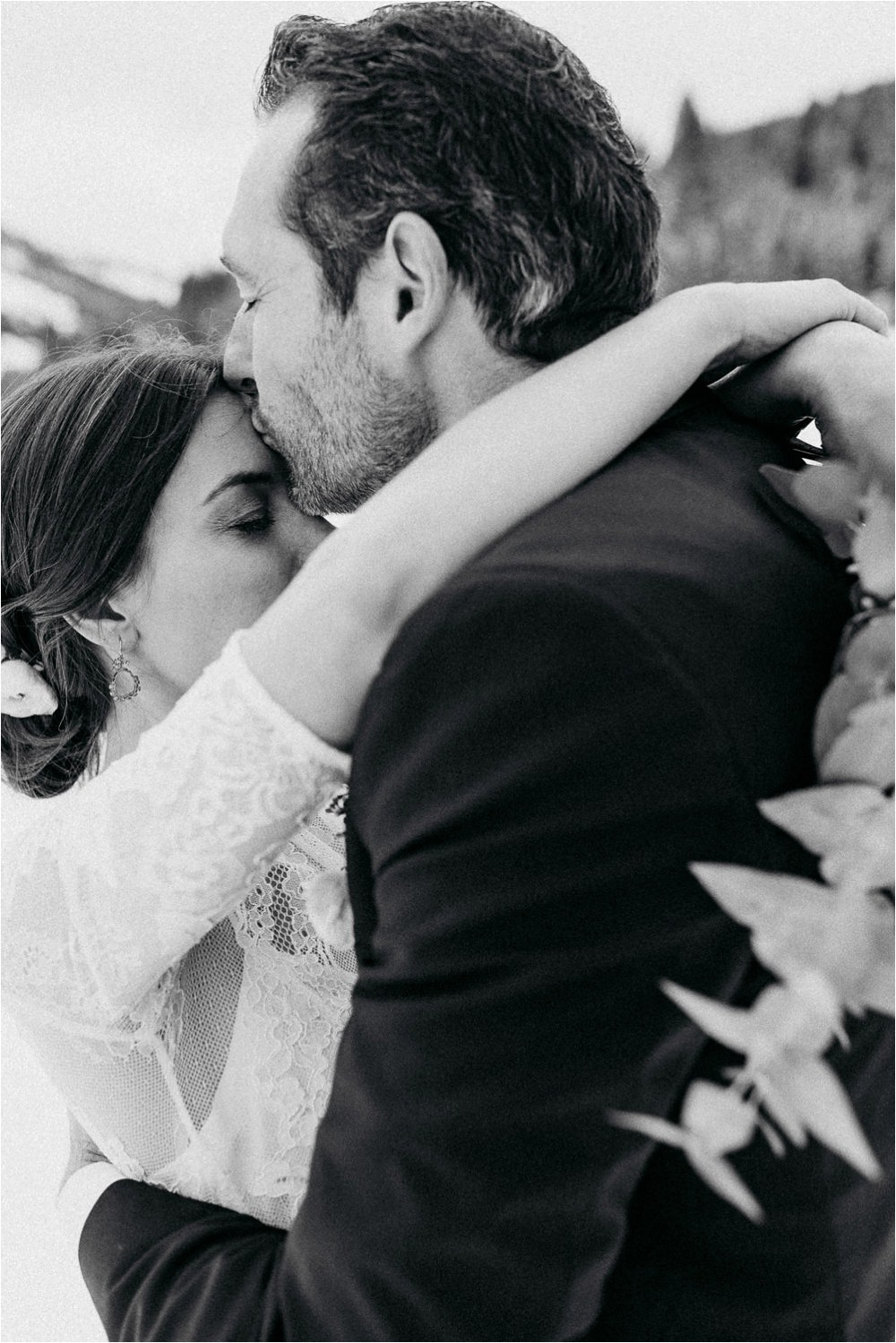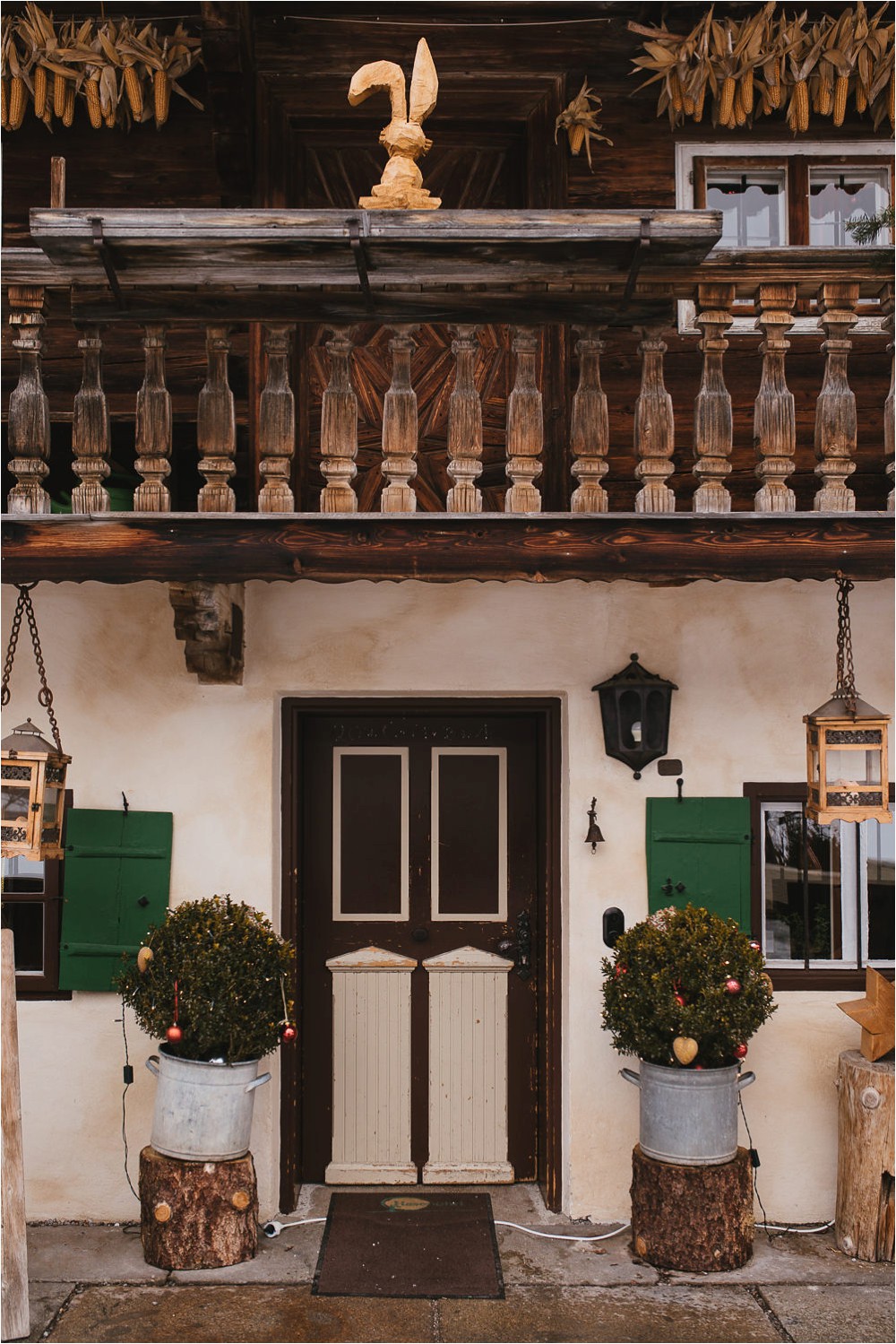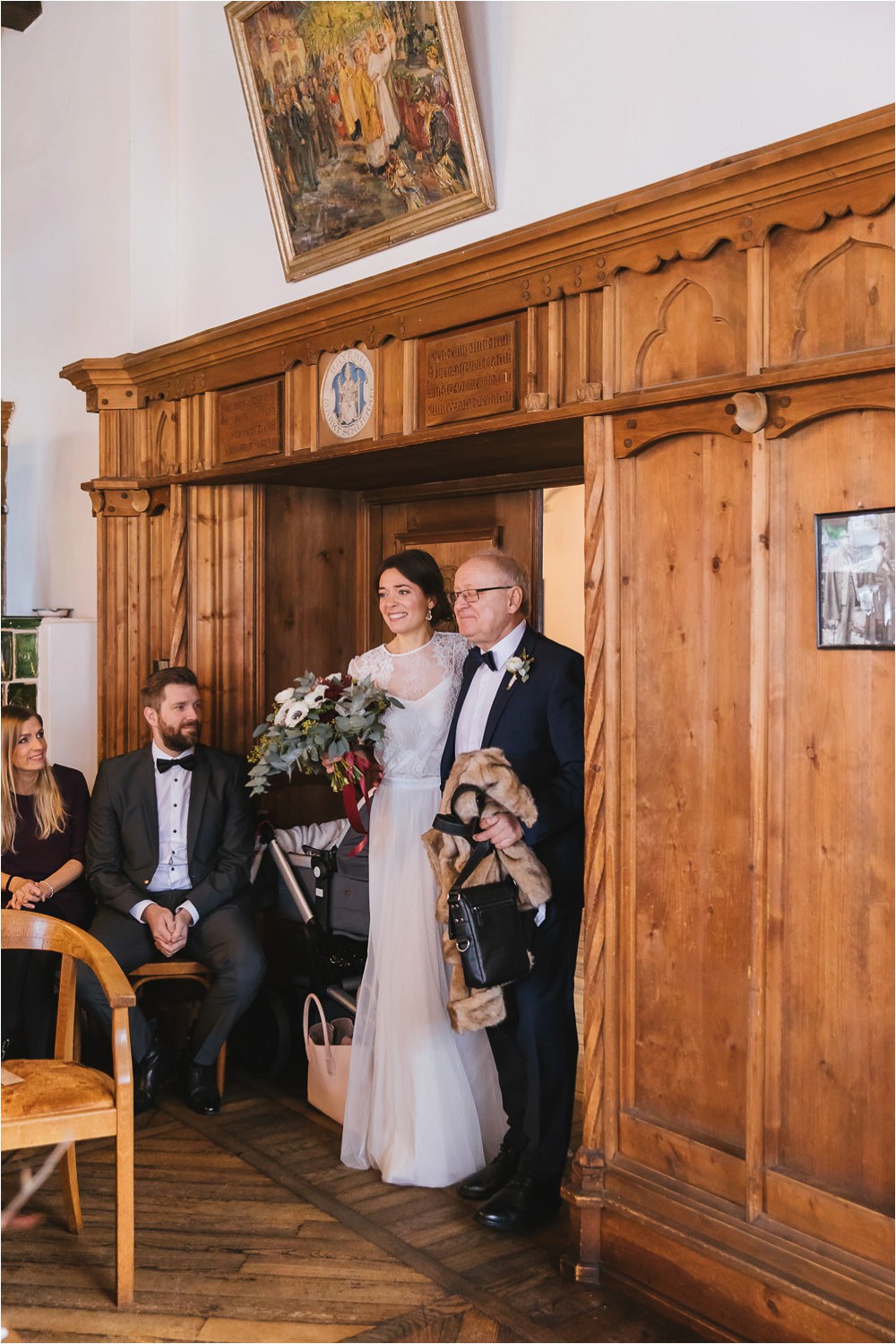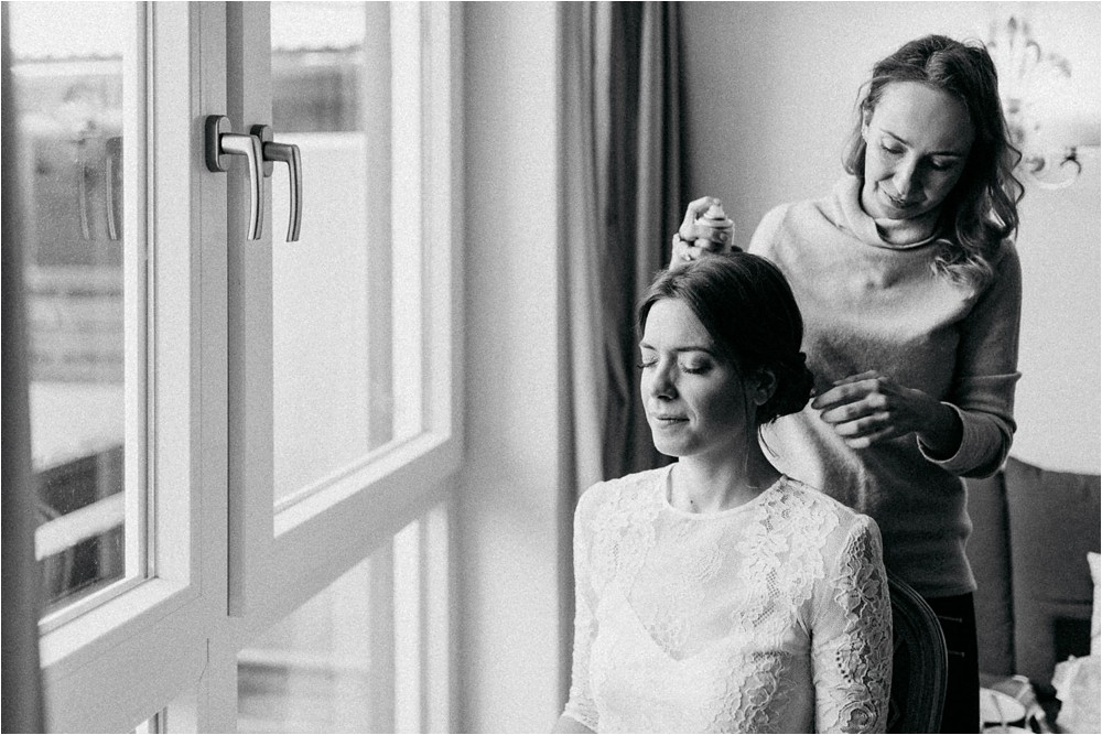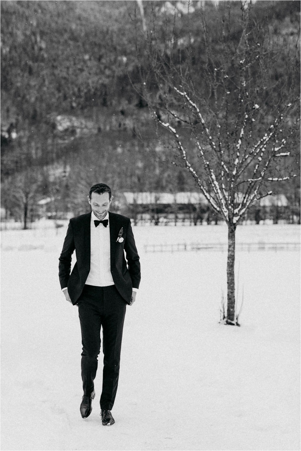 Der Nachmittag mit Kaffee und Kuchen in der Stub’n im schönen Hasenöhrl-Hof ist in vollem Gange. Meine gebuchte Zeit ist gleich vorbei, da fragte ich noch mein Brautpaar „Wollen wir noch ganz kurz ein paar Portraitfotos mit dem weißen Pulli machen?“ Es ist kalt draußen und die Dämmerung setzte allmählich bereits ein. Nach kurzer Überlegung hat sich meine Braut kurzerhand ihren Pullover mitsamt Brautstrauß geschnappt und wir sind raus. Raus in die Kälte, raus in die Stille und in die Dämmerung. Die Lichter vom Hasenöhrl-Hof leuchten. Die Kulisse des Hasenöhrl-Hofes ist traumhaft, man muss gar nicht weit laufen. Es war ruhig, man hörte nichts außer dem Knistern des Schnees unter unseren Füßen. Und da standen sie nun. Innig beieinander. Nur mein Brautpaar mit ganz viel Liebe zwischen den beiden und tausend tanzender Schneeflocken. Eine romantische, extravagante und traumhaft schöne Winterhochzeit im Hasenöhrl Hof.